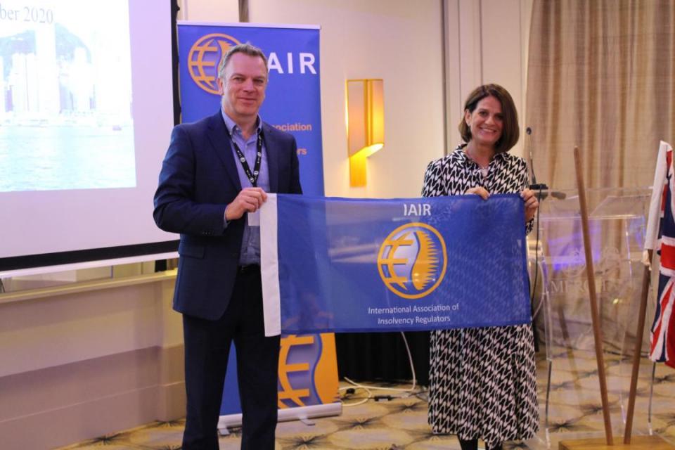 toHand over to the new IAIR Chair. Presentation by the host of IAIR 2020 – A welcome for IAIR members to Hong Kong and Formal Handing over of IAIR flag to the host for 2020 ConferenceRichard Monds - Director of NI Insolvency Service, Phyllis McKenna - Official Receiver, Hong KongHand over to the new IAIR Chair. Presentation by the host of IAIR 2020 – A welcome for IAIR members to Hong Kong and Formal Handing over of IAIR flag to the host for 2020 Conference